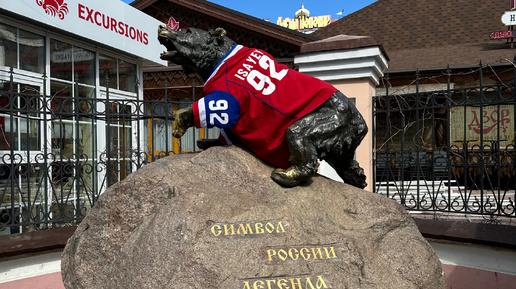 Рычащий памятник медведю в Ярославле переодели в форму вратаря Локомотива Исаева