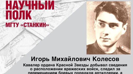 Сегодня исполняется 102 года со дня рождения Игоря Михайловича Колесова, который был учеником и последователем научной школы Бориса Сергеевича Балакшина, разработчика фундаментальных положений в области теории размерных цепей и теоретических основ базирования, оказавших влияние на международную практику. Игорь Михайлович пришёл в СТАНКИН только в 1947 году, а несколько лет своей жизнь он отдал военному делу. В 1942 году Колесов окончил командные курсы и получил звание младшего лейтенанта. Он воевал на Брянском фронте, а 3 июня 1943 года получил ранение...