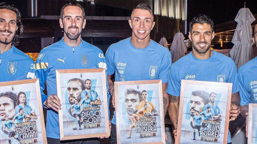 После нулевой ничьей с Южной Кореей сразу пять уругвайских футболистов повторили рекорд сборной и сыграли на четырех ЧМ подряд. Легенда Уругвая Педро Роча играл на чемпионатах мира в 1962-м, 1966-м, 1970-м и 1974-м. Теперь в компании рекордсменов еще Фернандо Муслера, Диего Годин, Мартин Касерес, Эдинсон Кавани и Луис Суарес – они не пропускают ЧМ с 2010-го. Футболисты и сами понимают, насколько давно они вместе. Вот позируют с наградами за рекорд. А вот совместное фото на тренировке. И еще одно...
