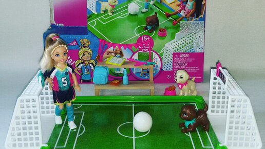 Приехала девчонка летом 2021 года. И не одна приехала:). А с футбольным полем, щенками и аксессуарами. У куклы необычное тело: если нажимать на плечи, то согнутая нога будет двигаться вперёд («бьёт по мячу»). В остальном — всё стандартно: голова поворотная, без наклона; руки и ноги в стороны не разводятся. Волосы мягкие, не вылезают.