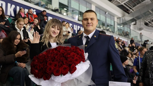 💍Предложение руки и сердца на игре красноярского ХК «Сокол» сделал сотрудник ИК-6 Сергей Щукин