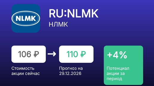 Прогноз по акции НЛМК Прогнозная цена: 110 ₽ (+4%) Рекомендация: Держать Дата прогноза: 29.12.2025 Прогноз до: 29.12.2026 Инвест-компания: Т-Инвестиции Автор прогноза: Команда аналитиков Ещё рекомендации на сегодня → ••••• 🔥 Получайте более 400 свежих прогнозов по акциям каждый день...