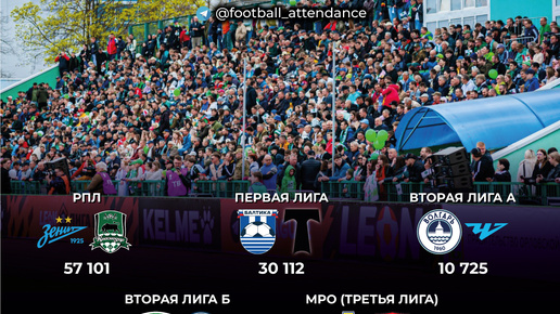 Максимальная посещаемость по всем лигам российского футбола в 2025 году