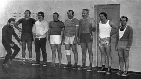 Команда волейболистов Почвенного института слева: (Соколов И.А., Столбовой В.С., Овечкин С.В., Белобров В.П., Сизов В.В., Граковский В.Г., Рожков В.А., Фрид А.С.) / Volleyball team of the Dokuchaev Soil Science Institute В 60-80 годы в Почвенном институте хорошо была налажена спортивная работа. Сотрудники...