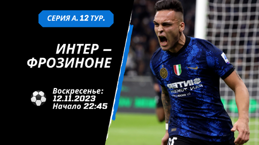 ⚽️ Чемпионат Италии 🇮🇹 Интер – Фрозиноне прогноз на матч 12.11 2023, Серия А, 12 тур. ⏰ Начало: 22:45