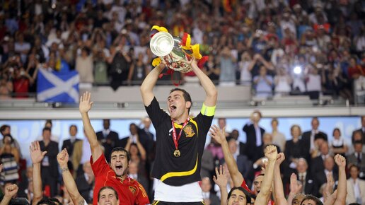 Доброго времени суток, любители футбола! Сборная Испании по футболу своего первого крупного международного успеха достигла в 1964. В финале второго Кубка Европы испанские футболисты обыграли советских. Снова сыграть в финале сборная Испании смогла через 20 лет, в решающем матче Евро 1984 она уступила великолепным французам с Платини. А затем на протяжении долгих лет испанская команда рассматривалась, как один из фаворитов любого крупного турнира, однако всегда футболистам с Пиренейского полуострова...