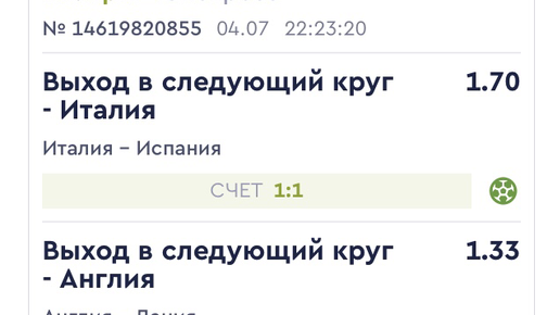 Экспресс ( в ставках ) - это пари состоящее минимум из двух одиночных ставок в разных матчах (если речь идет о футболе), либо абсолютно разных событиях. К примеру вы заключили пари на футбольный матч, и на бой UFC. Для того что бы вы выиграли, должно сойтись два события. Как видно из скрина, я заключил пари экспресс: проход Италии и Англии в финал.