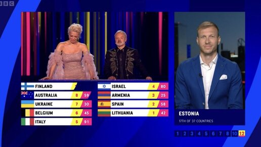 Экс-защитник «Ливерпуля» Клаван на Евровидении-2023 объявил оценки Эстонии. На сцене исполнили You’ll Never Walk Alone