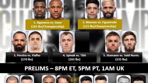 Доброго времени суток всем! Уже на этих выходных, нас ждёт первый номерной турнир UFC, в этом году . Турнир обещает быть очень зрелищным. В карде представлены два титульных боя . В тяжёлом весе свой титул будет защищать Фрэнсис Нгану, в бою против временного чемпиона Сирила Гана . В наилегчайшем весе чемпион Брэндон Морено проведёт реванш против бывшего чемпиона Дэвиса Фигередо. ( разборы и прогноз на эти два боя выложу позже) И в главном карде есть представитель России Саид Нурмагомедов...