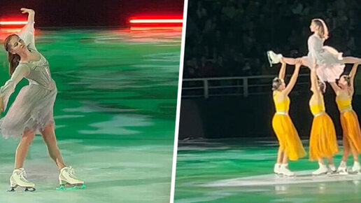 Липницкая в 25 снова на льду! Появилась из живого «цветка», показала шпагат и вращение 👏