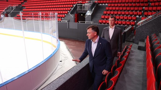 Михаил Дегтярев и Юрий Слюсарь посетили Дворец спорта в Ростове, где проходит реконструкция