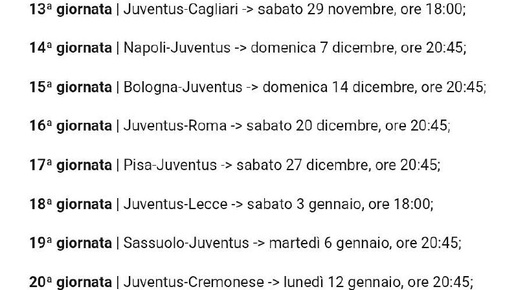 🚨📆 Даты и время матчей Ювентуса, с 13-го по 22-й тур