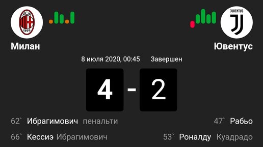 Здравствуйте дорогие друзья! Сегодня я буду говорить о матче Серии А (31-тур) Милан против Ювентуса в этом матче была забито 6 голов. Сперва состав команд: В первом тайме не увидели ни одного гола! Но во втором тайме в 47 минуте Рабьо забил гол. А после 6 минут Роналду забил гол. Ав 62 минуте было назад был назначен пенальти Ибрагимович забил гол! Последнего 66 минуте забил Кессиэ забил гол...