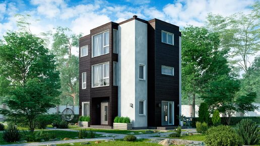Проект БП-146 — это небольшой, уютный трехэтажный загородный дом 6x9 м, общей площадью 134 м², с панорамным остеклением и эркером