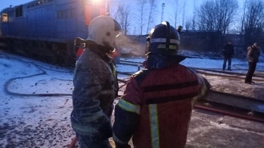 Спасатели тушили пожар повышенной сложности в железнодорожном боксе на севере Карелии