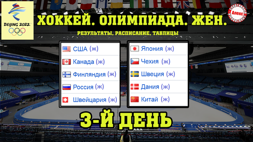 Олимпиада. Хоккей (Жен.). 3-й день. Результаты. Расписание. Таблица.