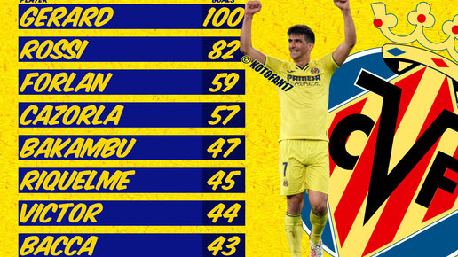 100 голов Жерара Морено за Вильярреал. Инфографика