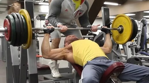 Жим штанги лежа на наклонной скамье для грудных мышц