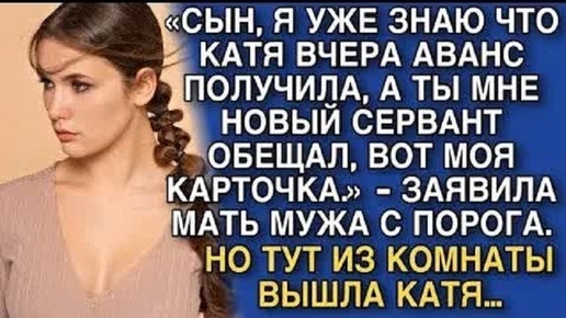 «Сын, я уже знаю что катя вчера аванс получила, а ты мне новый сервант обещал, вот моя карточка…