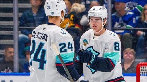 🐋🌊Защитник «Сиэтла» забросил потрясающую шайбу прямым броском с нескольких метров — Тэтчер Демко даже не понял, как так вышло. Для канадца эта шайба стала первой с сезона 2019-2020 и дебютной за «кракенов»...