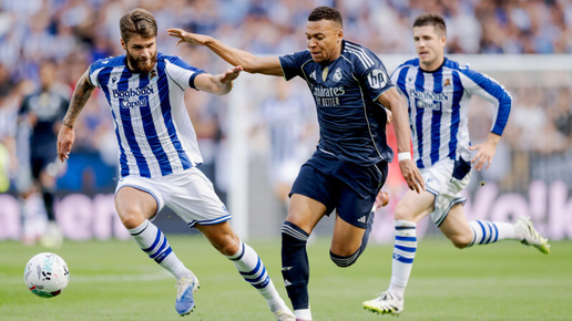 «Реал Сосьедад» на своем поле уступил мадридскому «Реалу» в матче четвертого тура чемпионата Испании по футболу. Встреча завершилась со счетом 2:1 в пользу гостей. В составе победителей голы забили Килиан Мбаппе и Арда Гюлер. У басков отличился Микель Оярсабаль, реализовавший пенальти. На 32‑й минуте защитник мадридцев Дин Хёйсен получил прямую красную карточку. Российский полузащитник Арсен Захарян вышел на поле на 66‑й минуте, но не отметился результативными действиями...