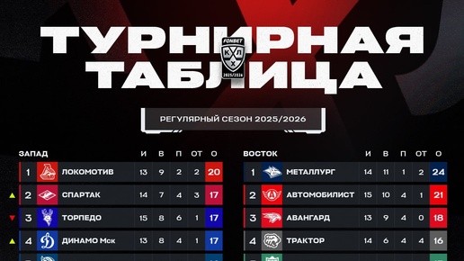 🔥🇷🇺 Турнирная таблица КХЛ! 📊 На каком месте находится ваша команда?