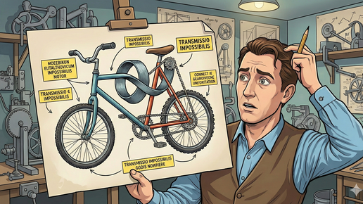 Прямо сейчас, прежде чем вы проскроллите дальше, сделайте паузу и представьте себе велосипед. Самый обычный, двухколёсный, который вы видели сотни раз в жизни. Возможно, даже катались на нём прошлым летом. А теперь мысленный эксперимент. Попробуйте в голове ( а еще лучше на листке бумаги) набросать его механическую схему. Как рама соединяет переднее и заднее колёса? Как протянута цепь и где находятся педали? Если ваш велосипед выглядит как сюрреалистическая конструкция, которая никогда не сдвинется с места, — добро пожаловать в клуб...