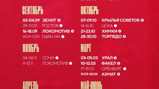 Календарь МХК "Спартак" на сезон 2022 / 2023