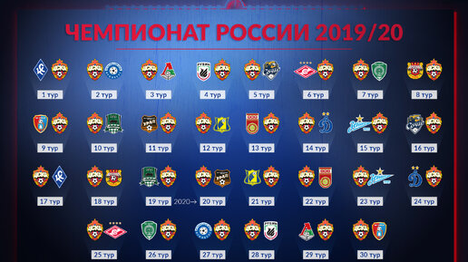 Общее собрание Российской Премьер-Лиги согласовало проект календаря сезона-2019/20. Согласно проекту, красно-синие начнут чемпионат в Самаре, завершат домашним матчем с «Тамбовом», а дерби состоятся в шестом и 25-м турах. Календарь ПФК ЦСКА в РПЛ-2019/20 1-й тур. «Крылья Советов» (Самара) — ПФК ЦСКА