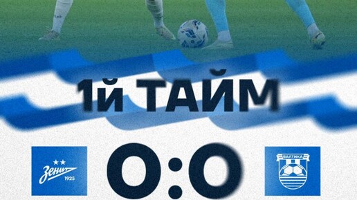 Завершился первый тайм матча 19-го тура Мир Российской Премьер-лиги между петербургским «Зенитом» и калининградской «Балтикой». На перерыв команды ушли при счете 0:0. Стартовая половина встречи прошла в напряженной борьбе с рядом опасных моментов, но ни одной из сторон не удалось открыть счет. На 2-й минуте Максим Петров нанес первый удар по воротам «Зенита», однако мяч попал в защитника хозяев и не достиг цели. На 7-й минуте арбитр показал первую желтую карточку — предупреждение получил игрок «Балтики» Титков...