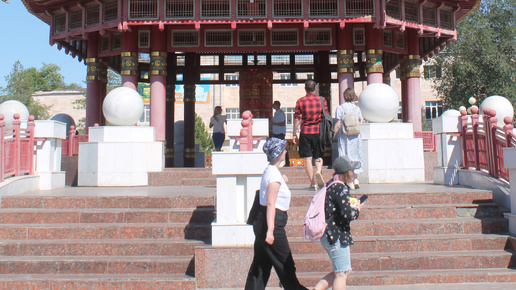 В Элисте обязательно нужно пройти через Алтн Босх – по-калмыцки «золотые ворота» с картинами, иллюстрирующими историю калмыцкого народа. Появилось сооружение в 90-е годы, когда многое разрушалось. Поэтому, наверно, и возникла необходимость в нем. Ведь пройдя через золотые ворота, ты обретаешь – по поверью – силу духа и становишься на путь добродетели. Далее дорожка ведет к Элистинскому государственному университету, памятнику В.И. Ленину, мощным фонтанам и пагоде Семи дней, которую, как утверждают местные, строили тибетские монахи...