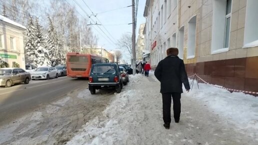 Жители Калуги жалуются на нерасчищенный тротуар на улице Луначарского