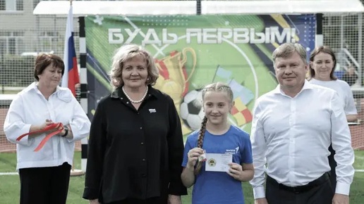 Открытие спортплощадки у школы №6 Камышлова при участии Людмилы Бабушкиной и Алексея Половникова