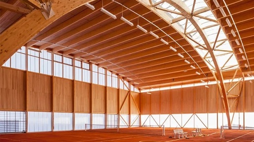 🎾 12 кортов под одной крышей: новый теннисный центр в Гренобле за 7,2 млн евро Задачей проекта было не только создать новые теннисные площадки, но и создать центральную локацию в новой спортивной зоне города. В качестве основного материала было выбрано дерево как самый экологичный и визуально приятный материал. Особенности проекта: • Волнообразная форма кровли отсылает к движению теннисного мяча и задает пространству ту же динамику, что и у тенниса • Естественный свет проникает через световые...