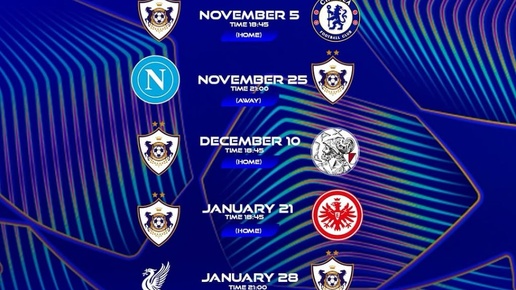 ⚽️⚽️ Расписание матчей футбольного клуба "Карабах" в Лиге чемпионов