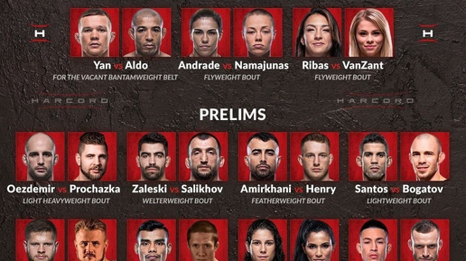 Легчайший Вес: Петр Ян (занимает сейчас 3 позицию рейтинга) Vs Жозе Алдо (6 позиция) Полулегкий Вес: Александр Волкановски (1-й в рейтинге) VS Макс Холлоуэй (2-й в рейтинге) Полусредний вес: КАМАРУ УСМАН(1-й в рейтинге) VS Гилберт Бернс (2-й в рейтинге) Я думаю этот Кард заставит Каждого прильнуть в Экрану Ведь...
