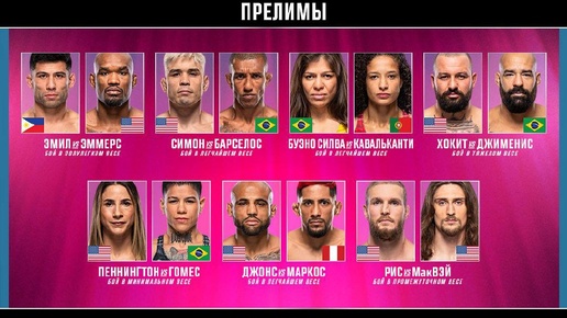 ⚡️ Кард #UFCVegas105 ⏰ Начало турнира в 01:00 / Главный кард в 04:00 по МСК 📺 Весь турнир, а также повтор будет доступен на UFC Fight Pass. Оформить подписку можно с помощью нашего бота @UfcFightPa