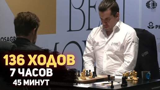 Карлсен - Непомнящий! Та самая шестая партия, которая длилась 136 ходов (7 часов 45 минут)