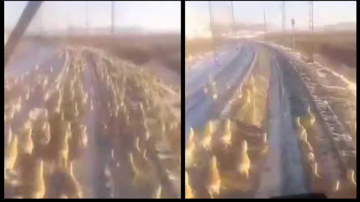 💨 Огромное стадо дзеренов бежит вдоль железнодорожных путей, напоминая кадры из документального фильма про дикую природу...