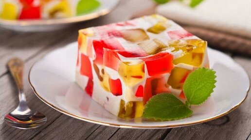 Творог 0,2% — 200-250 г; жидкий йогурт 0% — 400-450 г; сахарозаменитель — 40 г; Желатин — 30 г; три вида фруктового желе. 1 Приготовить желе. Проще это сделать с помощью покупного продукта быстрого приготовления — растворить порошок в кипятке, как указано на упаковке, и остудить до застывания...