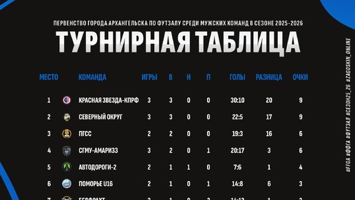 🔥 Турнирная таблица | Первая лига | 14.10.2025 #zagoskin_online #ффга #футзал #перваялига #высшаялига #втораялига #третьялига #суперлига #кубокгорода #сезон25_26