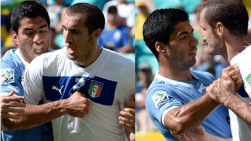 9 лет назад Суарес укусил Кьеллини. Присматривался больше года, а болельщик поставил на это и выиграл