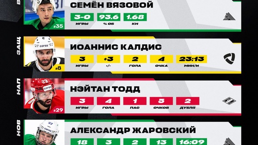 КХЛ представляет лучших игроков 7-й недели сезона 2025/2026.