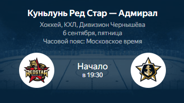 Куньлунь Ред Стар - Адмирал: смотреть трансляцию матча КХЛ