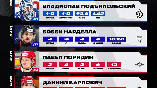 КХЛ представляет лучших игроков 4-й недели сезона 2025/2026.