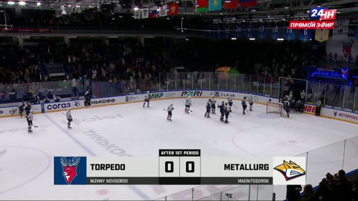 После первого периода матча КХЛ "Торпедо" - "Металлург" счет 0:0