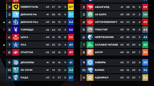 🔥🇷🇺 Турнирная таблица КХЛ на данный момент