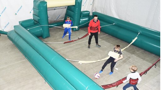 Надувной кикер — большой вариант игры из детства! Все любили играть в настольный футбол или хоккей. Сейчас у Вас есть возможность оказаться на месте самих игроков в огромном варианте такой настольной игры. На игрока прикрепляется пояс участника, который связан с противоположными бортами прочными канатами, что значительно стесняет движения и делает их весьма ограниченными (чуть вправо и влево). Задача все та же, есть две противоположные команды, которые борются за количество забитых мячей. Если убрать...