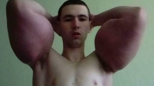 Кирилл Терехин - блогер, который специализируется на рассказах, как быстро и без лишних затрат накачаться. Свои бицепсы он накачал, не поднимаясь с дивана. Никаких гантелей и штанг. Только результат оказался совсем не таким, как ожидалось. 58 сантиметров. Такими объемами бицепсов в свои лучшие годы не мог похвастаться даже Шварценеггер. Но только эти внушительные показатели меркнут на контрасте с весьма щуплым телосложением обладателя шикарных мышц рук. Но блогер из Пятигорска не скрывает: это результат не тренировок, а ежедневных инъекций...