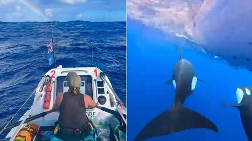 Три кита-убийцы окружили лодку с женщинами в океане во время гонки и попали на видео